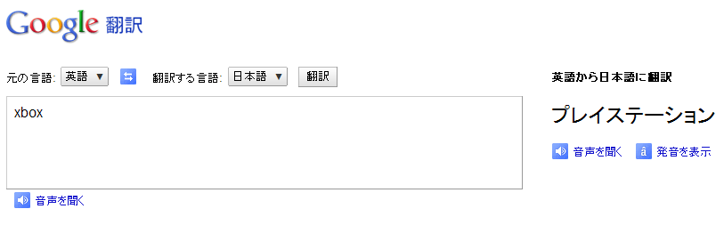 google翻訳で xbox と入力すると・・・